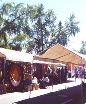 the road was blocked off, with music stages on each end and canopied